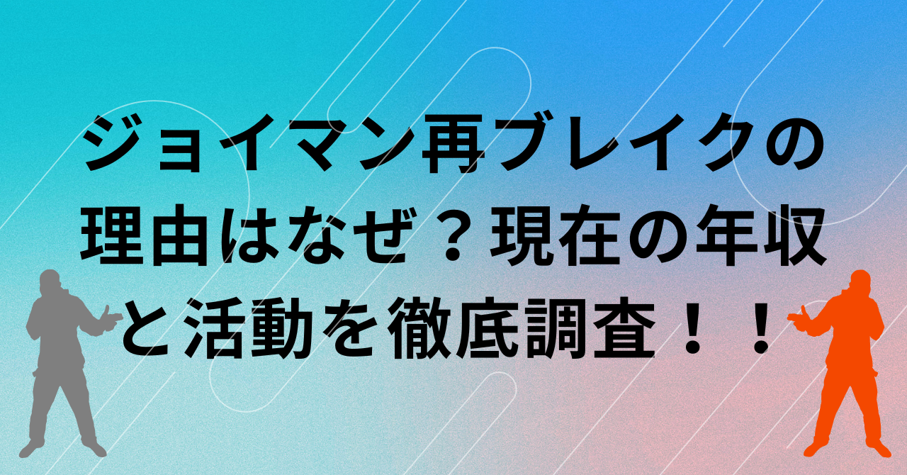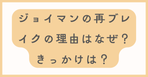 ジョイマンの再ブレイクの理由はなぜ?きっかけは?