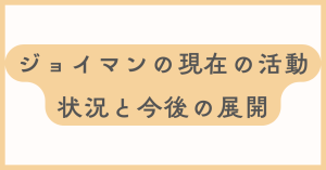 ジョイマンの成功は、SNSを活用した継続的な発信と、変わらぬスタイルを貫きながらも新しい挑戦を続けた結果だと言えるでしょう。